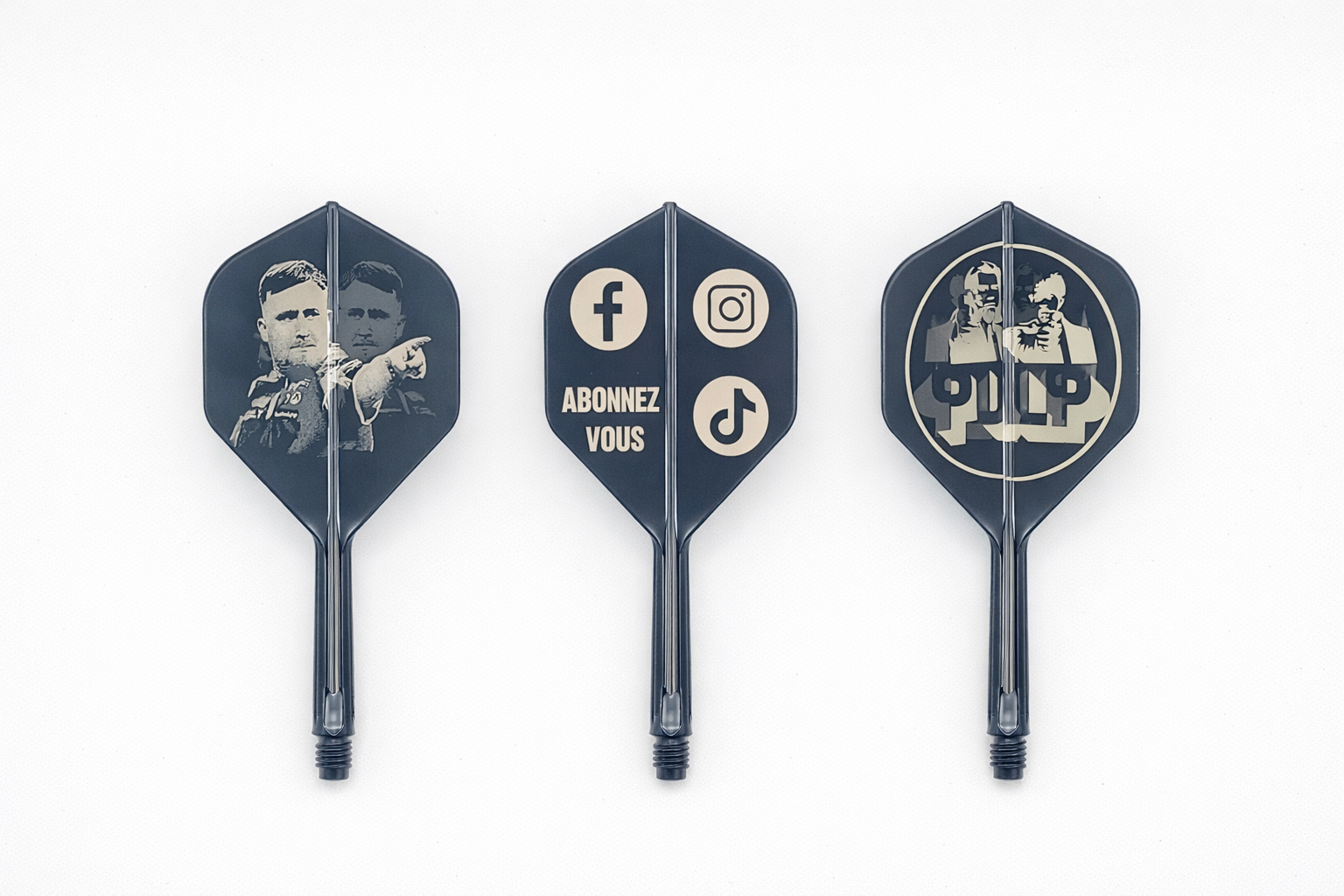 Ailettes fléchettes personnalisées K-Flex conçues pour offrir une stabilité optimale, une précision maximale et un style unique. Personnalisez vos ailettes avec votre logo, votre photo, le nom de votre équipe ou un texte personnalisé afin de créer un équipement totalement à votre image.
